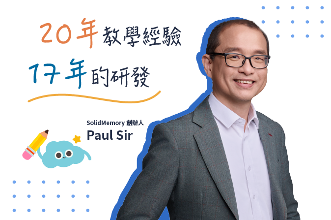 Paul Sir決定自家創製教學軟件,是為了幫助有學習困難的子女,故花了整整兩年時間,最終完成了SolidMemory的第一個產品原型。 Paul Sir表示太太是英文系畢業